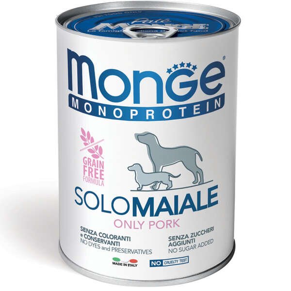 Konservuotas pašaras, pagamintas iš unikalių gyvulinių baltymų šaltinio – aukščiausios kokybės atrinktos kiaulienos. Produktai yra 100 % itališki ir labai skanūs. Subalansuotas maistas, kuriame yra vitaminų A, E ir D3 kompleksas bei būtini mikroelementai. Natūralus, be dažiklių, konservantų ir pridėtinio cukraus.