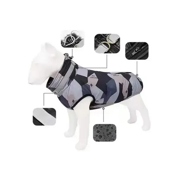 Drabužėlis su patraukliu dizainu ir atšvaitiniais elementais. Pavadėlio žiedas yra pritvirtintas prie apykaklės.
